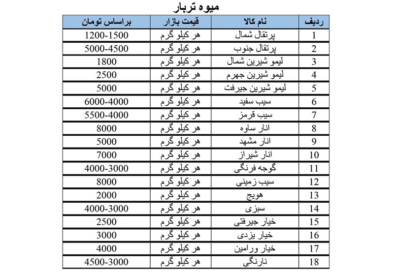قیمت انواع میوه و تره‌بار و مواد پروتئینی در کرمانشاه؛ سه‌شنبه دوم بهمن ماه + جدول