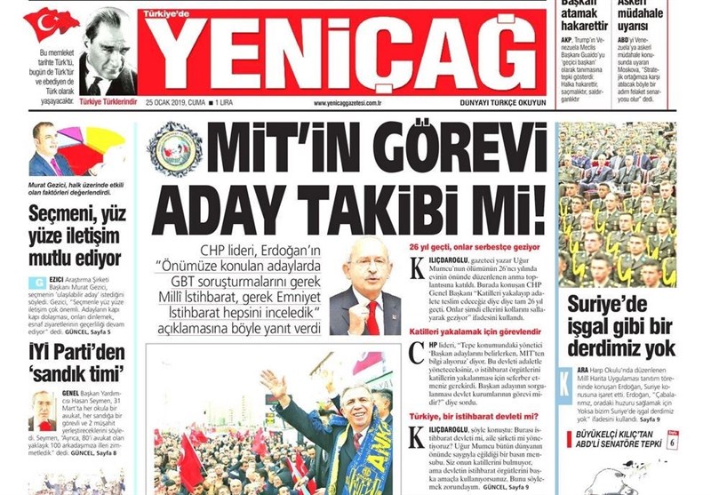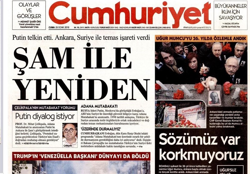 به گزارش گروه بین‌الملل خبرگزاری تسنیم، بسیاری از روزنامه‌های ترکیه، امروز در عکس و تیتر صفحه نخست، بحران در ونزوئلا را برجسته کرده‌اند. همچنین این روزنامه‌ها موضوعات دیگری مانند منطقه امن سوریه را مورد توجه قرار دادند.