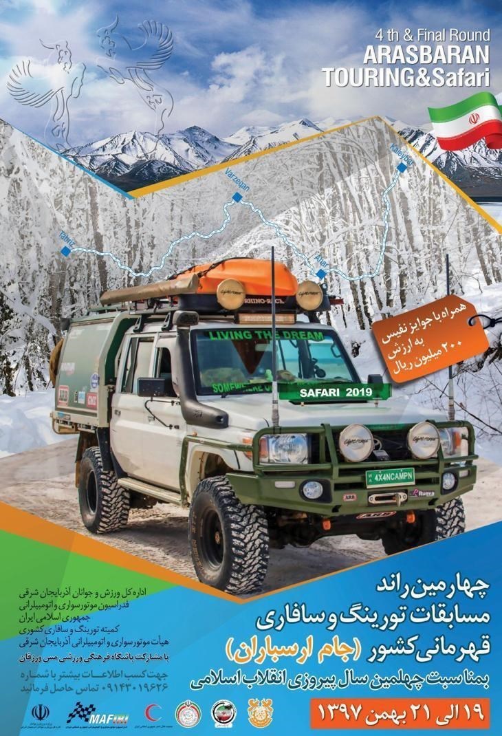 امیرخیزی به تشریح برنامههای هیئت اتومبیلرانی و موتورسواری آذربایجان شرقی برای میزبانی از راند اول مسابقات سافاری پرداخت و یادآور شد: انشاءالله میخواهیم در آینده سالی یک بار میزبان این مسابقات باشیم. سعی میکنیم در آینده هم در جهت معرفی زیباییهای منطقه ارسباران، میزبانی راند اول را هم برعهده بگیریم. ما این موضوع را در تقویم ورزشیمان هم ثبت میکنیم. البته برگزاری مسابقات در برف و در مناطق کوهستانی یکی از جذابیتهای راند چهارم به شمار میرود.