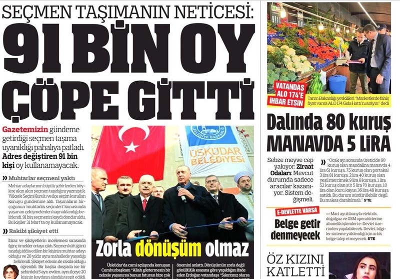 به گزارش گروه بینالملل خبرگزرای تسنیم، بسیاری از روزنامههای ترکیه، امروز در عکس و تیتر صفحه نخست، تحولات مربوط به انتخابات شهرداریها را برجسته کردهاند.