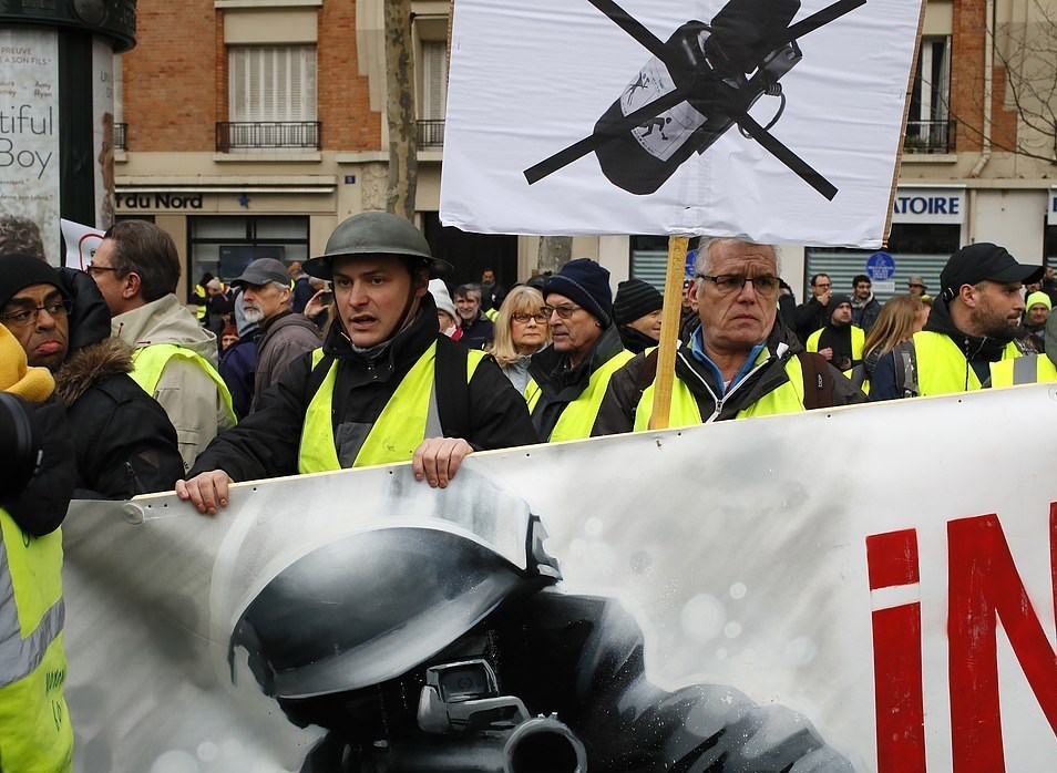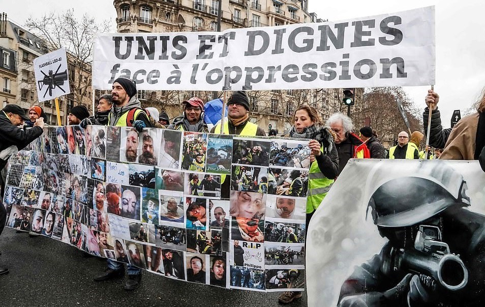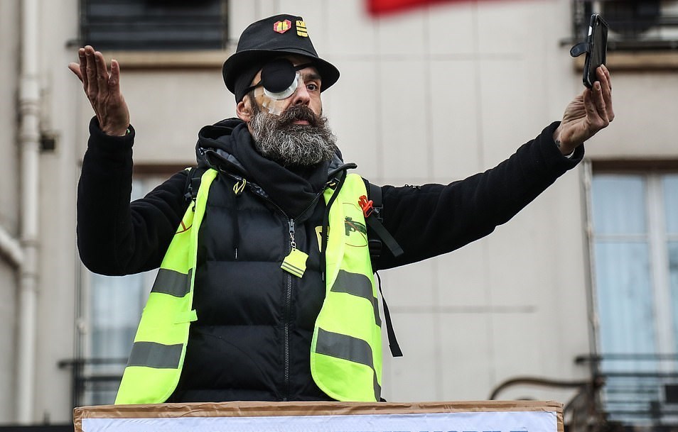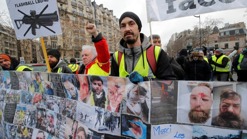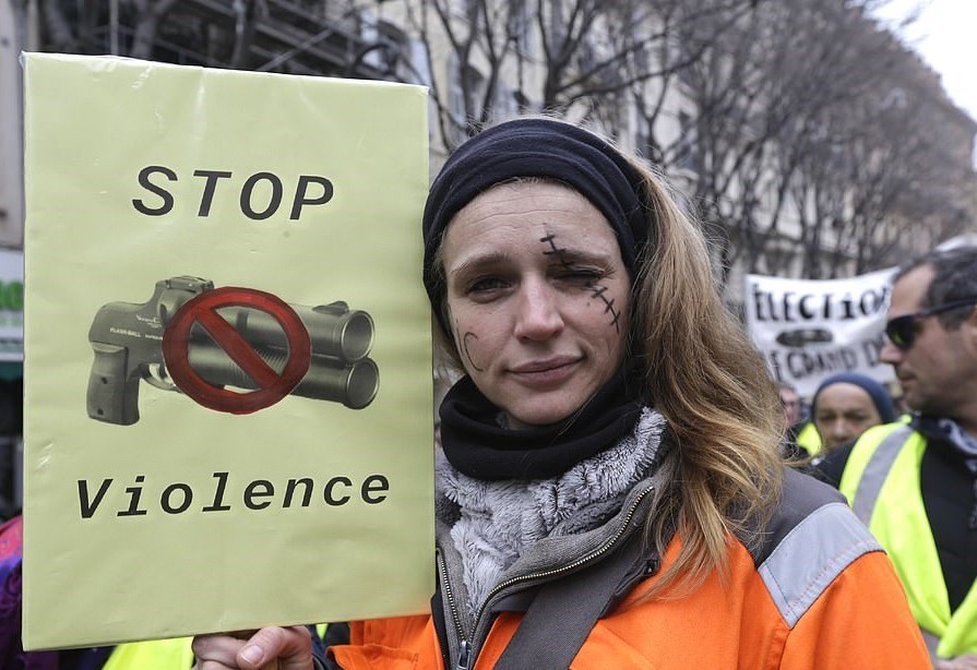 هفته گذشته یعنی یازدهمین شنبه اعتراضی جلیقه‌زردها نیروهای پلیس با شلیک گلوله‌های پلاستیکی موجب نابینا شدن یکی از فعالان به‌نام جرمی رودریگز شدند.