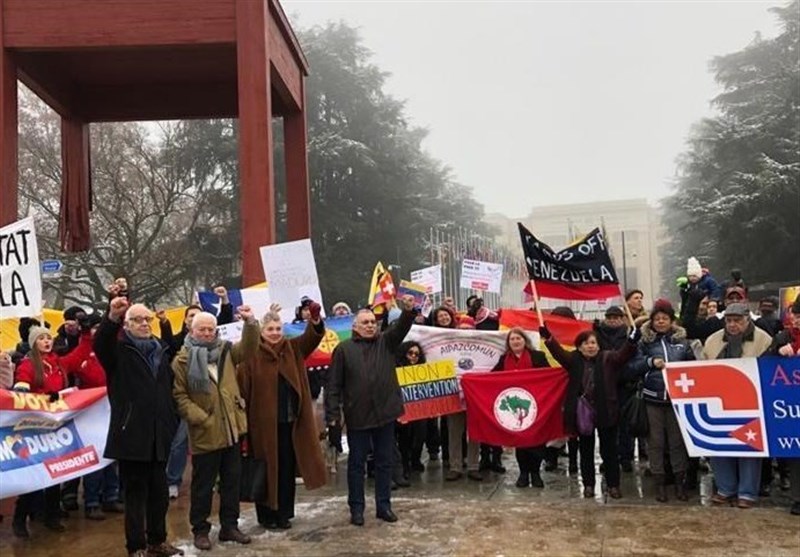 به گزارش گروه بین الملل خبرگزاری تسنیم به نقل از خبرگزاری آناتولی، حدود 100 نفر از تظاهرات کنندگان با تجمع در مقابل ساختمان سازمان ملل در شهر ژنو نسبت به تحریم های آمریکا علیه ونزوئلا و حمایت واشنگتن از خوان گوایدو رئیس جمهور خودخوانده این کشور اعتراض کردند.