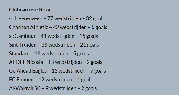 این رسانه هلندی سپس آمار گلزنی رضا قوچاننژاد در تیمهایی که بازی کرده است را منتشر کرد.