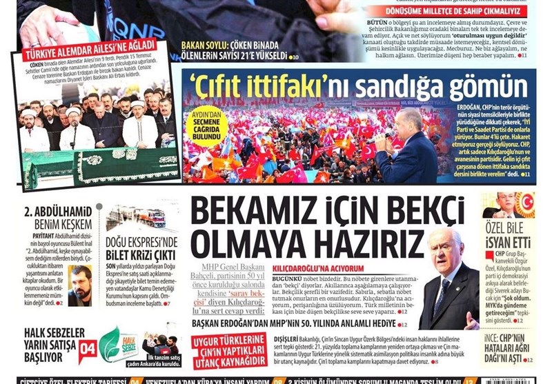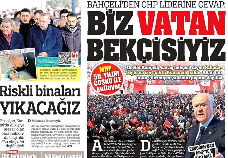 به گزارش گروه بینالملل خبرگزاری تسنیم، بسیاری از روزنامههای ترکیه، امروز در عکس و تیتر صفحه نخست، تدفین قربانیان ساختمان کارتال استانبول را برجسته کردهاند.