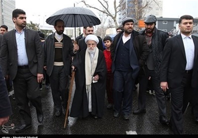 **حضور آیتالله آملی لاریجانی و آیتالله جنتی در جمع راهپیمایان تهرانی
