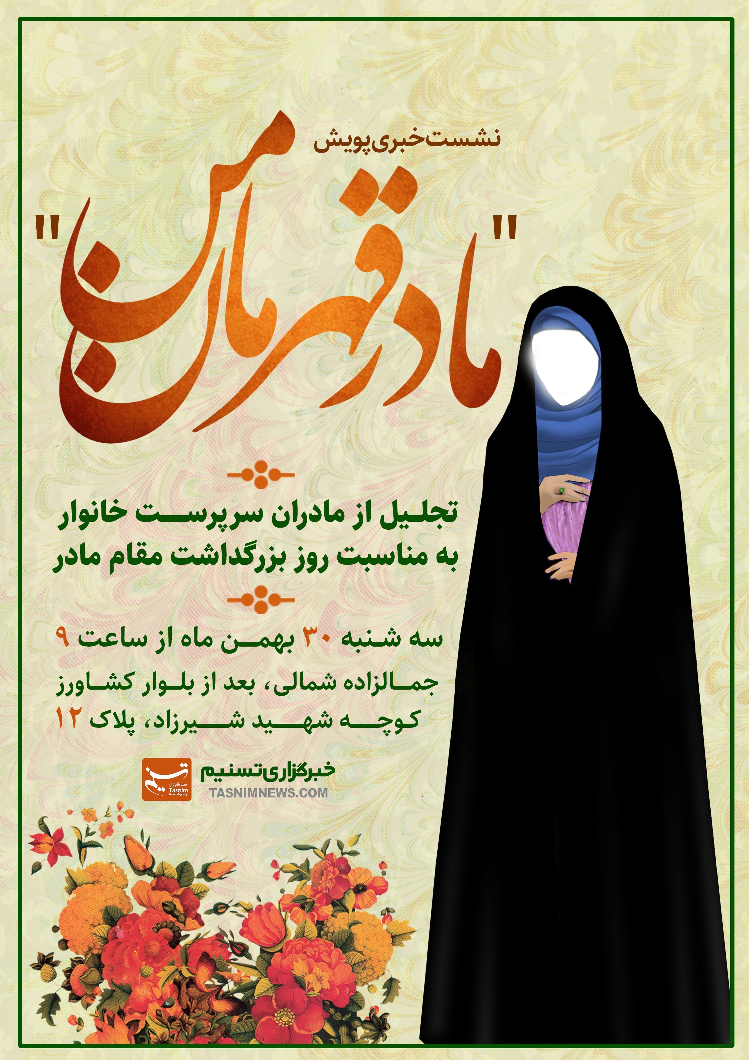 به گزارش خبرنگار فرهنگی باشگاه خبرنگاران پویا، نشست خبری پویش «مادر قهرمان من» فردا صبح، سه شنبه 30 بهمن ماه 97 با حضور خبرنگاران و اصحاب رسانه در خبرگزاری تسنیم برگزار میشود.