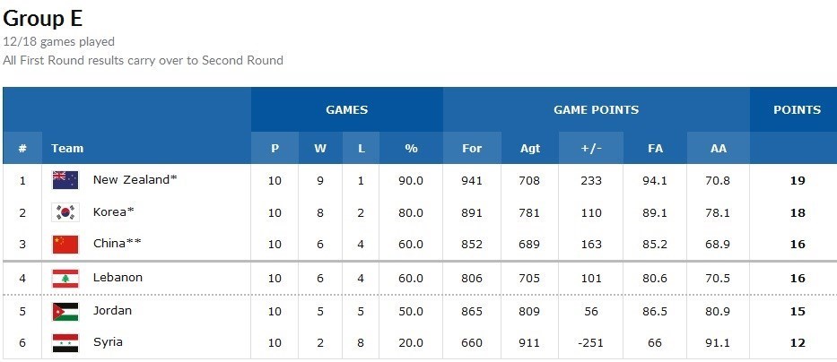 رده بندی 12 تیم حاضر در مسابقات انتخابی جام جهانی 2019 چین در گروه آسیا به شرح زیر است: