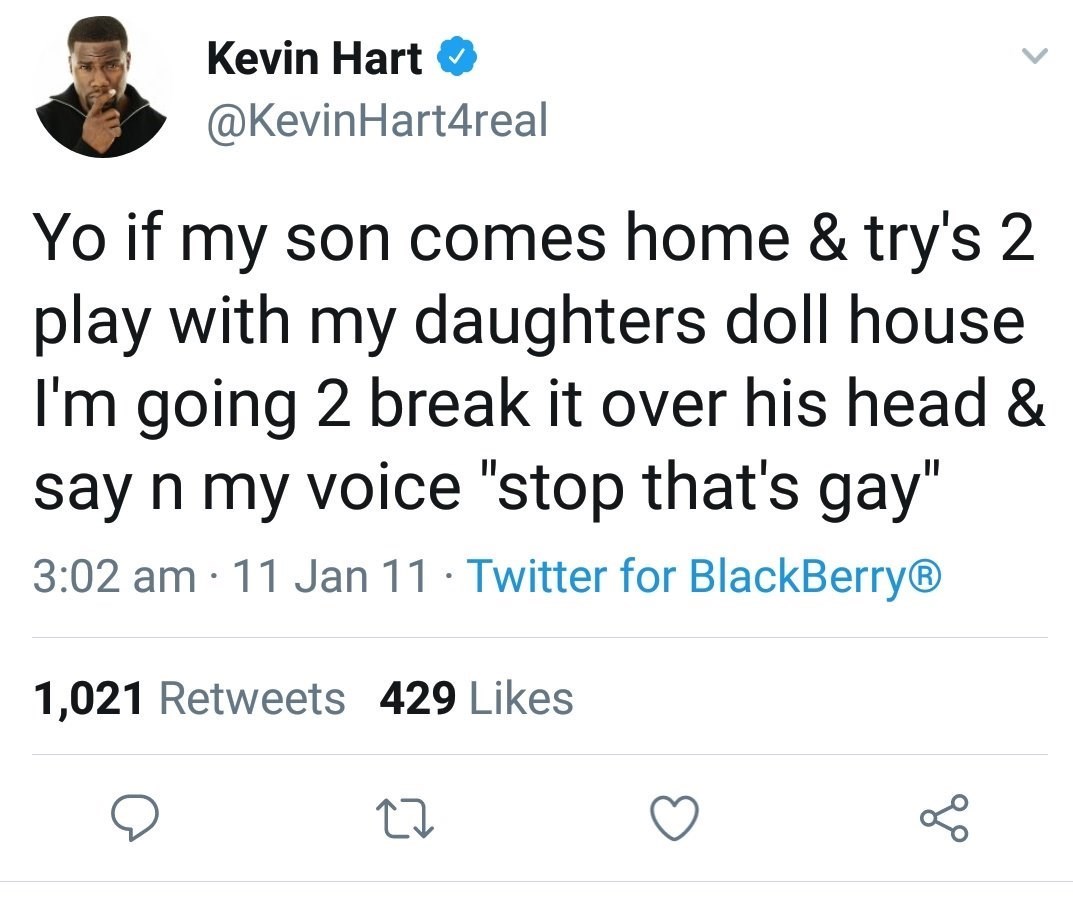 بعد از این اتفاق نه تنها توضیحات و توجیهات کوین هارت دردی از مشکلش دوا نکرد، بلکه حتی حمایت یک مجری همجنسباز شناخته شده مثل الن دی جنرس هم فایده نداشت و در نهایت آقای کمدین از برنامه آکادمی حذف شد. ساعاتی پیش یک مجسمه طلایی از کوین هارت در حالی که پرچم رنگین کمان همجنسبازان را به دست گرفته در ملا عام دیده شده که نشان می دهد انتقادات و ترور شخصیت او تمامی ندارد.
