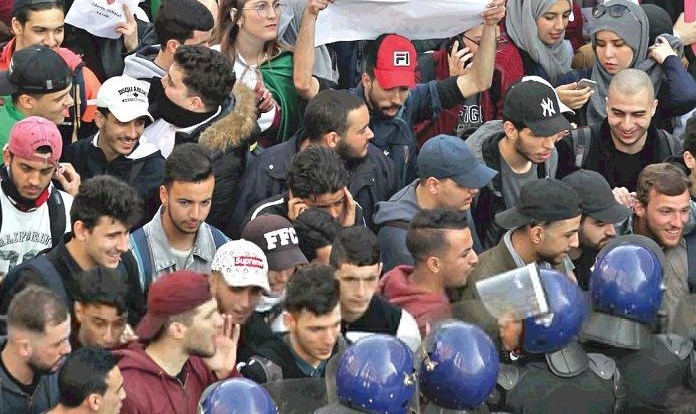 به نوشته روزنامه الجزایری الخبر الیومی، استادان این دانشگاه ها برای اولین مرتبه دیروز همراه با دانشجویان خود در تظاهرات علیه نامزدی بوتفلیقه شرکت کردند، اما پلیس ضد شورش به آنان اجازه نداد، از محوطه دانشگاه بیرون بروند. با وجود این ، هزاران دانشجو همراه با استادان خود فریاد زدند " نه ، به پنجمین بار نامزدی بوتفلیقه" ، " حکومت جمهوری پادشاهی نیست"