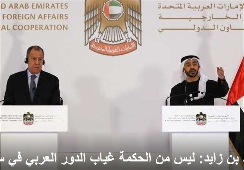 وزیر خارجه روسیه اظهار داشت: « ما معتقدیم که بازگرداندن امنیت و تقویت امنیت بدون حل و فصل سیاسی بحرانها غیر ممکن است و مسکو و ابوظبی همین موضع را در قبال اوضاع سوریه، یمن و لیبی دارند.