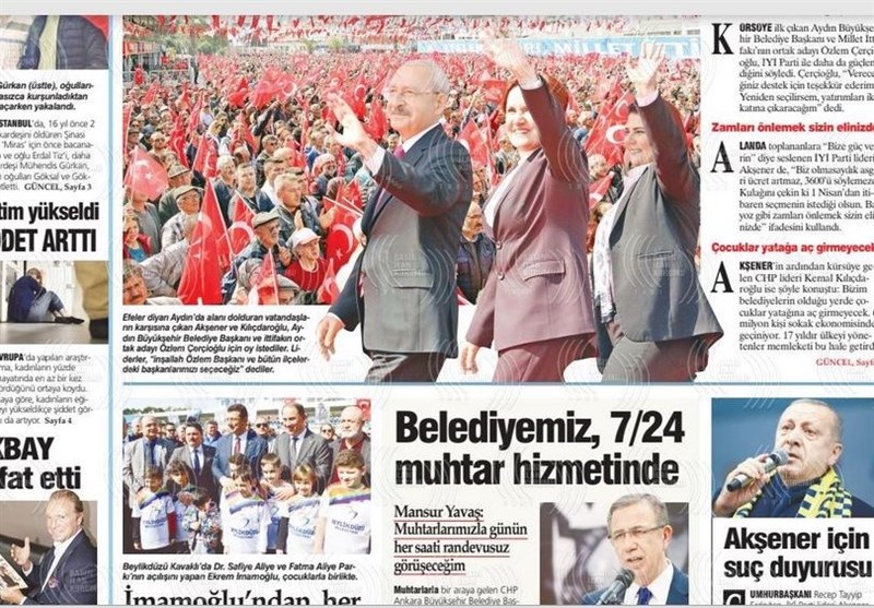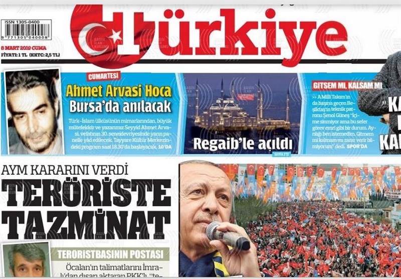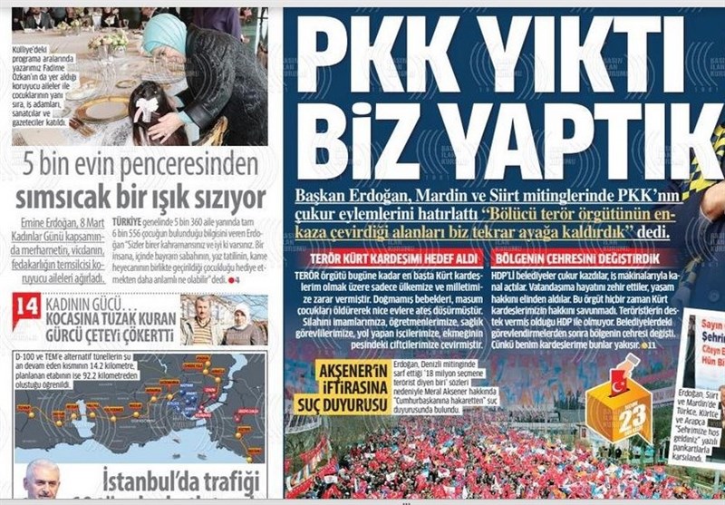 به گزارش گروه بینالملل خبرگزاری تسنیم، بسیاری از روزنامههای ترکیه، امروز در عکس و تیتر صفحه نخست، سخنان اردوغان علیه پ.ک.ک و ائتلاف ملت را برجسته کردهاند.