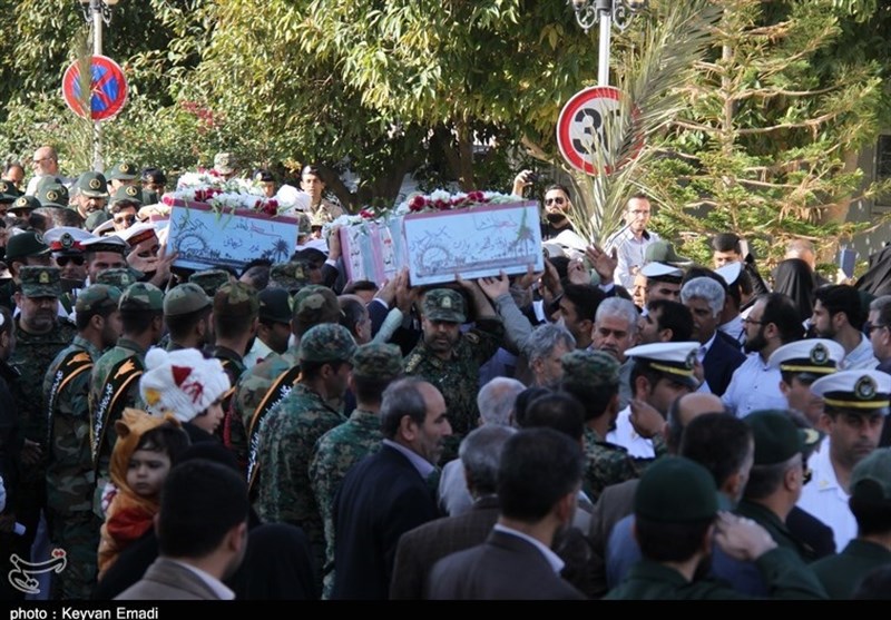 در مراسم تشییع 3 شهید والامقام جاویدالاثر 8 سال دفاع مقدس که با حضور نماینده ولی فقیه در استان ، استاندار، فرماندهان نیروهای مسلح و سایر قشرهای مردم برگزار شد تشییع کنندگان با شعارهای شهدا زندهاند الله اکبر به خون آغشتهاند الله اکبر، حسین حسین شعار ماست شهادت افتخار ماست و شهدا راهتان ادامه دارد پیکرپاک شهدای گرانقدر را تشییع کردند.