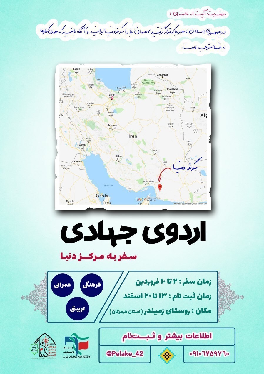 مسئول قرارگاه جهادی شهدای گمنام در ادامه تصریح کرد: زمان برگزاری این اردو از دوم تا دهم فروردین ماه 98 است و علاقمندان برای شرکت در این اردوی جهادی از 13 اسفند تا 20 اسفند ماه زمان برای ثبت نام دارند. علاقمندان جهت ثبت نام و کسب اطلاعات بیشتر با این شماره میتوانند در ارتباط باشند: 09106259760