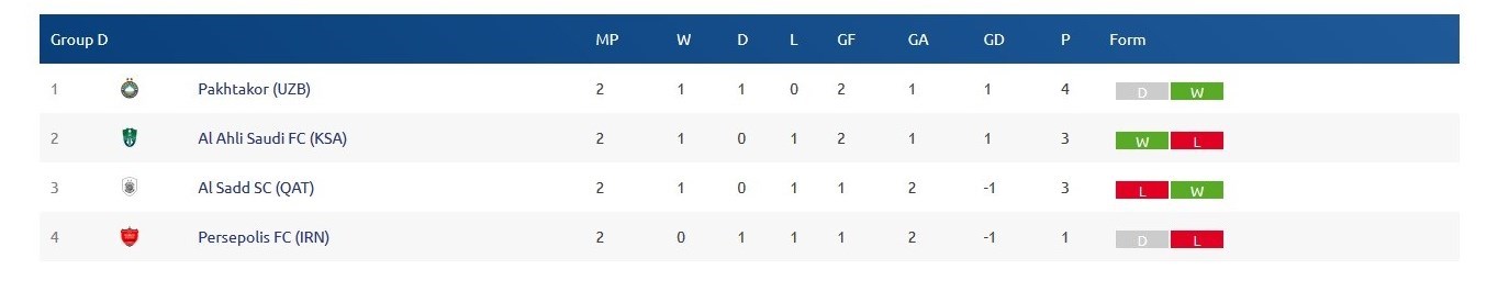 جدول گروه D لیگ قهرمانان آسیا