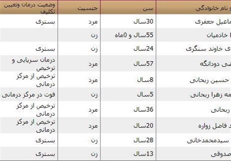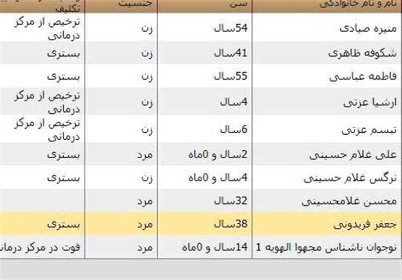 اسامی جان باختگان حادثه که توسط بستگان شناسایی و احراز هویت شده اند به شرح ذیل می باشد :