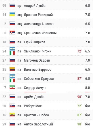 در این میان خبرگزاری ورزشی چمپیونات روسیه با مشارکت کاربرانش نمره فنی بسیار خوب 8 را به بازی 90 دقیقهای سردار آزمون برابر تیم اورنبورگ اختصاص داد.