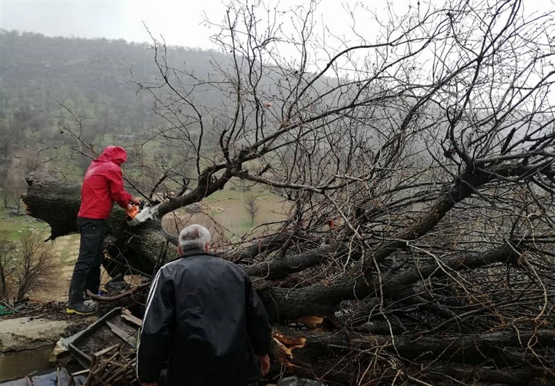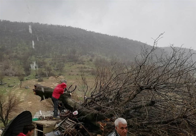 بارش شدید باران و وزش باد سبب سقوط درخت تنومند بلوط بر روی سقف خانه‌ای در روستای دلی خمسیر بویراحمد شد.