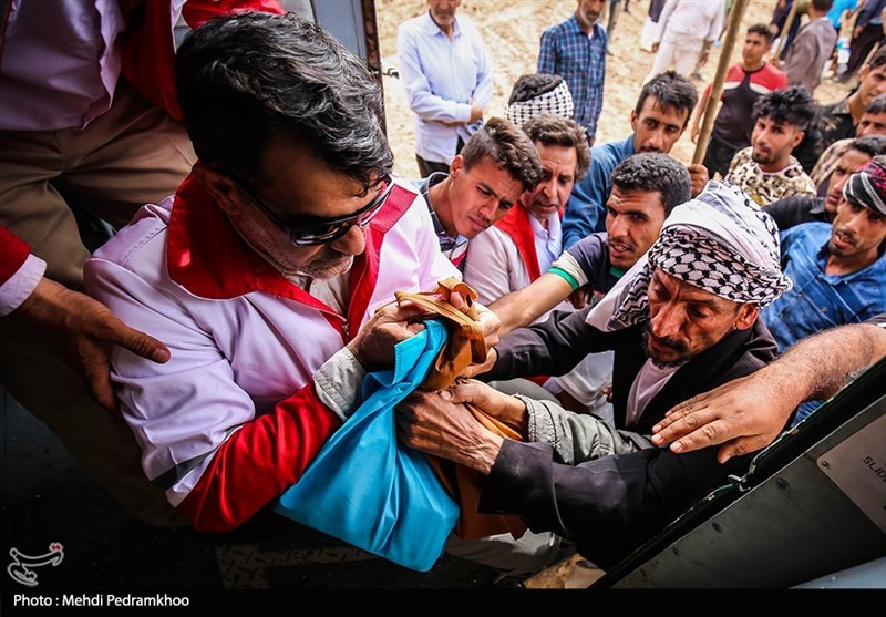 به گزارش خبرگزاری تسنیم از اهواز، توزیع کمک‌های امدادی هلال احمر در روستاهای بامدژ ابوطیور و عنافچه از طریق راه‌های هوایی با هلیکوپتر است که به‌دلیل طغیان رودخانه راه‌های مواصلاتی آنها از بین رفته است.