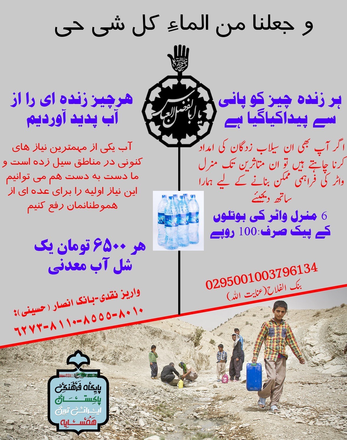 دبیر پایگاه فرهنگی پاکستان ایرانی ترین همسایه اضافه کرد: در مراحل بعدی تلاش خواهیم کرد تا سایر وسایل مورد نیاز مردم حادثه دیده از جمله امکانات بهداشتی را نیز در حد توان خود تامین نمائیم.
