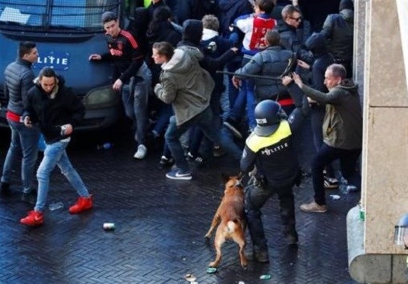 از سوی دیگر تماشاگران تیم میزبان هم به دنبال خرابکاری و آشوب بودند که پلیس با گاز اشکآور و دستگاههای آبپاش به دنبال متفرق کردن آشوبگران رفت. هواداران تیمهای هلندی و ایتالیایی روابط خوبی با یکدیگر ندارند و دو سال پیش در جریان بازی رم و فاینورد نیز حواشی زیادی به وجود آمد.