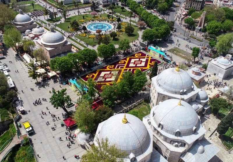 در یکی از میادین استانبول فرش عظیمی از گل لاله ایجاد شده است.