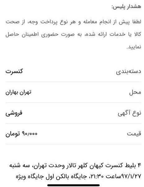 آیا وجود 14 بلیت در سایت دیوار که هر کاربری به راحتی و بدون امکان «راستی آزمایی پیش از معامله» امکان عرضه آن را دارد، از میان بیش از 7 هزار بلیت به فروش رفته و توزیع شده از یکی از استادان موسیقی ایرانی بازار سیاه نام دارد؟