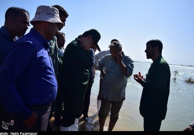 خوزستان| فرمانده نیروی دریایی سپاه از روستای سیل‌زده «صراخیه» شادگان بازدید کرد