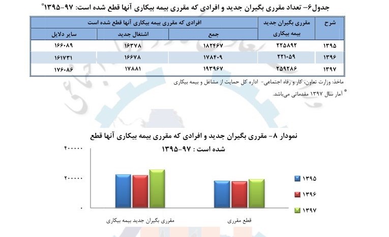 بررسی بیمه بیکاری و افراد بهره مند از این مزیت، یکی از مواردی است که می تواند در تحلیل بازار کار کشورها مفید باشد. همچنین لازم به ذکر است رویکرد جهانی در این خصوص کاهش تعداد مقرری بگیران با تاکید بر حفظ اشتغال می باشد چرا که افزایش این امر می تواند بیانگر مشکلات اقتصادی کارگاه ها و تعطیلی آنها باشد. بررسی مقرری بگیران جدید طی سال های 1395 تا 1397 روند افزایشی این تغییرات را نشان می دهد. به نحوی که میزان تعییران سال 1397 نسبت به سال قبل 17.3 درصد بوده است.