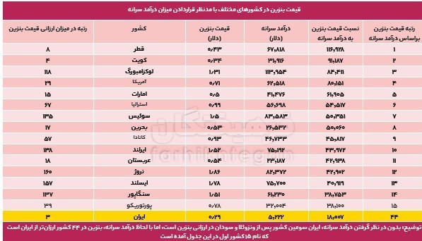 به گزارش گروه رسانه های خبرگزاری تسنیم، در روزهای پایانی هفته گذشته شایعه افزایش قیمت بنزین به یکی از مهمترین چالشهای نظام اجرایی کشور تبدیل شد، بهطوری که رسانههای منتشرکننده اخبار افزایش قیمت بنزین میگویند این خبر از سوی دولتیها به آنها رسیده و در سوی دیگر نیز دولتیها هرگونه ارائه اطلاعات در این زمینه را تکذیب میکنند. اما چالش بنزین فقط به این اظهارنظرها و اخبار منتهی نمیشود، بهطوری که بررسیهای آماری نشان میدهد قیمت بنزین در ایران معادل 10 درصد قیمت بنزین در کشورهای منطقه است و از سوی دیگر در سالهای اخیر میزان مصرف بنزین نیز با سرعت چشمگیری به بیش از روزانه 91 میلیون لیتر در سال جاری رسیده است که ادامه این روند میتواند خود به یکی از چالشهای حوزه حملونقل در کشور تبدیل شود. همچنین بررسیهای آماری نشان میدهد در سال جاری 123 هزار میلیارد تومان یارانه پنهان بنزین بین دهکهای مختلف درآمدی توزیع خواهد شد که 54 درصد آن عاید سه دهک پردرآمد و فقط 9 درصد آن به سه دهک کمدرآمد خواهد رسید. علاوهبر بالا بودن مصرف و بیعدالتی در برخورداری از یارانه پنهان، افزایش قاچاق بنزین نیز مساله دیگری است که اهمیت مدیریت مصرف بنزین را دوچندان کرده است. اما در کنار موارد فوق، مسالهای که باید از سوی دولت مدنظر قرار گیرد این است که مطابق سناریوهای مختلف که در این گزارش بررسی شد، افزایش عجولانه قیمت بنزین آنطور که دولت میخواهد نزدیک به قیمت فوب خلیجفارس باشد و هرگونه قاچاق سوخت و همچنین هرگونه یارانه پنهان را از بین ببرد، میتواند بهواسطه حد بالای انتظارات تورمی، بار تورمی بسیار شدیدی را در شرایط فعلی ایجاد کند. همچنین اگر دولت قیمت بنزین را کمتر از قیمت فوب خلیجفارس یعنی حدود 50 سنت تعیین کند، در آن صورت نیز قیمت بنزین در ایران معادل 10 تا 20 درصد قیمت فوب خلیجفارس خواهد بود که بازهم اهداف مدنظر دولت یعنی آزادکردن نرخ حاملهای انرژی محقق نشده و مهمتر از همه اینکه با اجرای این طرح بار تورمی بالایی نیز به جامعه تحمیل خواهد شد که با هر حساب و کتابی، هزینه اجرای آن بیش از منفعتش است. بررسیهای این گزارش نشان میدهد با وجود اینکه ایران سومین کشور با بنزین ارزان در جهان است، اما تطبیق قیمت بنزین با میزان درآمد سرانه کشورهای مختلف نشان میدهد قیمت بنزین در 44 کشور جهان ارزانتر از ایران است. بهعبارتی، افزایش قیمت بنزین در شرایط فعلی بیش از آنکه نتایجی همچون حذف یارانه پنهان را در پی داشته باشد، منجر به سقوط رفاه خانوارهای کمدرآمد خواهد شد که قدرت خرید آنان در یکسال اخیر بهشدت کاهش یافته است. گزارش حاضر با مدنظر قرار دادن سناریوهای مختلف، 9 پیشنهاد برای مدیریت قیمت و مصرف بنزین در کشور داده است که در ادامه به آنها پرداخته خواهد شد.