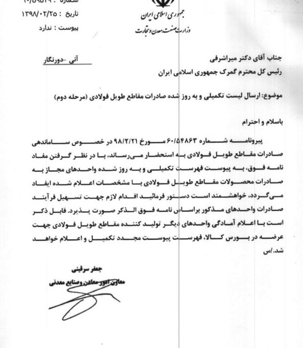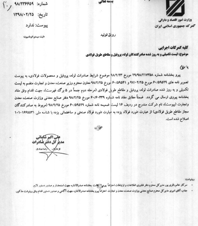 به گزارش خبرنگار اقتصادی خبرگزاری تسنیم، دفتر صادرات گمرک ایران، براساس دستورالعمل ساماندهی صادرات محصولات فولادی در بخشنامهای فهرست تکمیلی و به روز شده صادرکنندگان لوله، پروفیل و مقاطع طویل فولادی را به گمرکات اجرایی ابلاغ کرد.