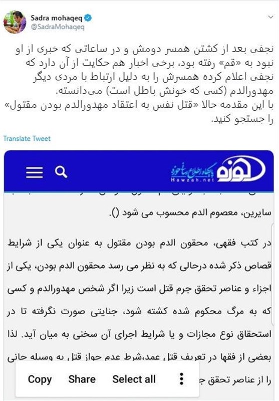 همسر دوم نجفی، شهردار اسبق تهران به‌قتل رسید