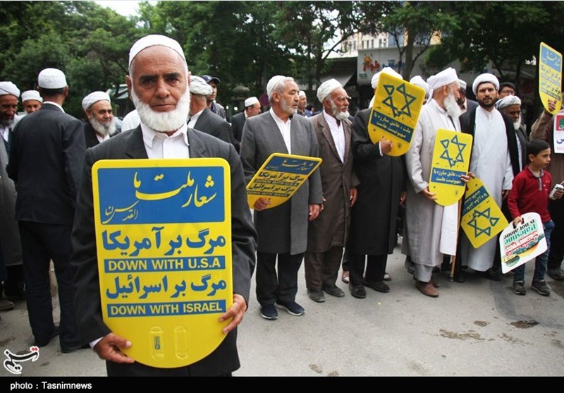 اقوام انقلابی و همیشه در صحنه اهل تسنن خراسان شمالی در لبیک به ندای رهبر معظم انقلاب اسلامی در راهپیمایی روز جهانی قدس در کنار شیعیان استان حضوری با شکوه داشتند.