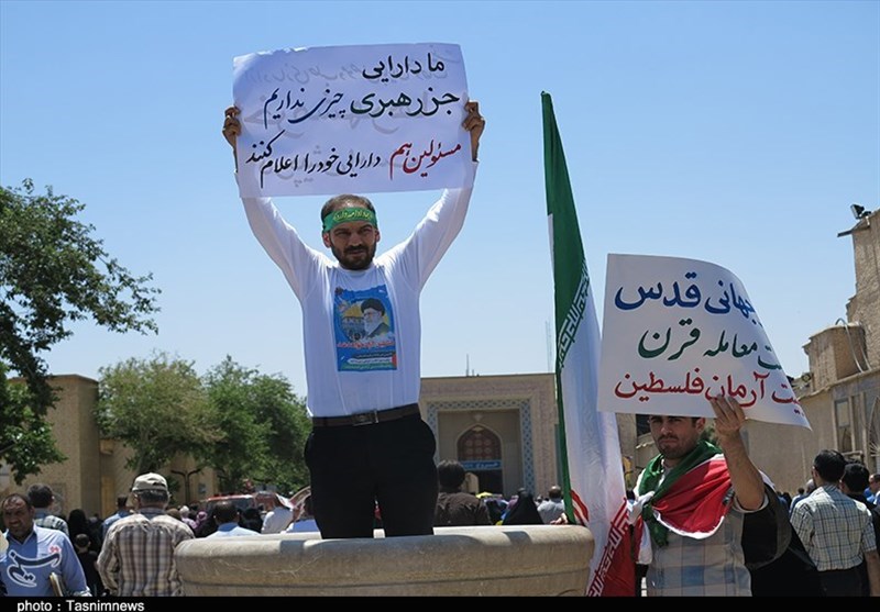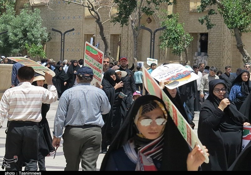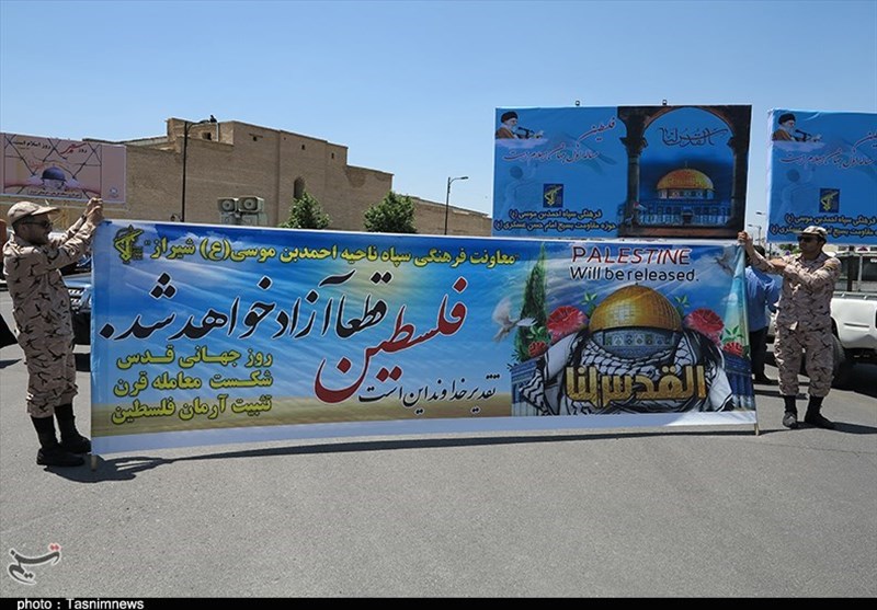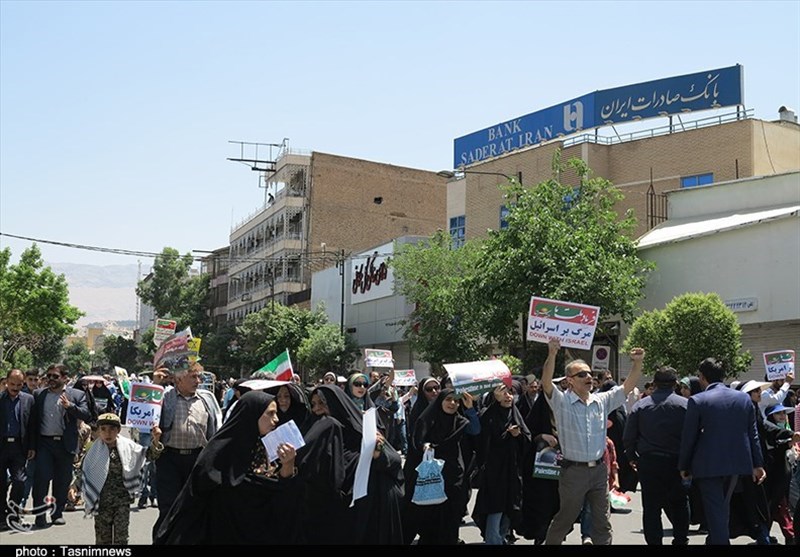 به گزارش خبرگزاری تسنیم از شیراز، راهپیمایی روز قدس با حضور باشکوه ‌اقشار مختلف مردم در تمام شهرهای ‌استان فارس به ویژه در شهر شیراز ‌با شعار "مرگ بر اسرائیل"‌و "مرگ بر آمریکا"‌ برای رساندن فریاد مظلومیت مردم فلسطین ‌به گوش جهانیان برگزار شد.