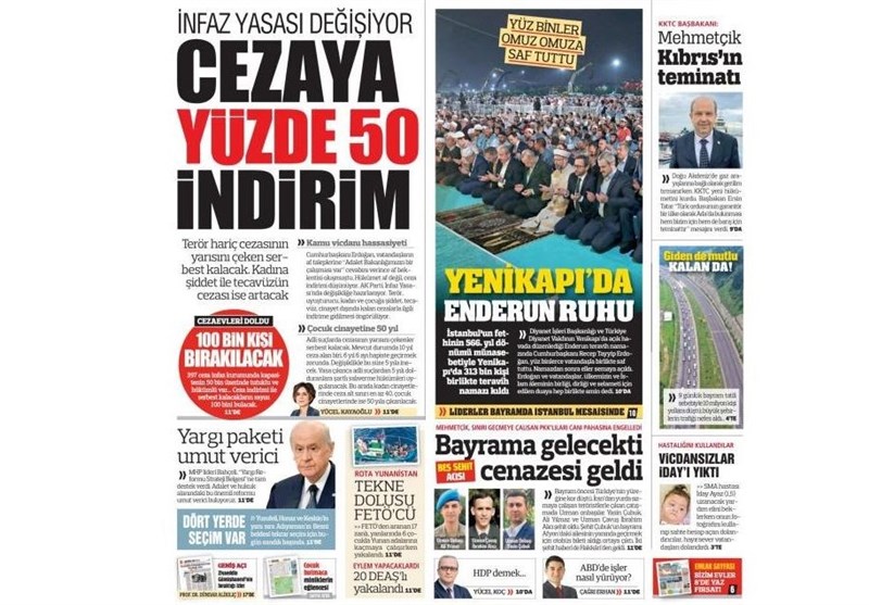 نشریات ترکیه در یک نگاه|دیدار یلدرم با سران طریقت اسماعیل آقا/ 26 بار حبس ابد برای خلبانان کودتاگر