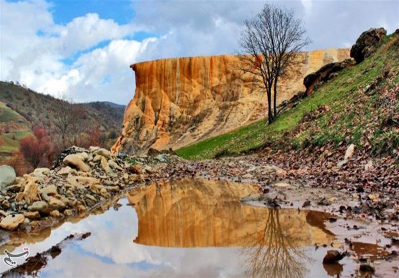 میزان املاح موجود در آب این چشمه حداقل یک گرم در لیتر میباشد، این آب گازدار و معدنی پس از بیرون آمدن از دل زمین، روی سطح زمین جاری میشود و در مسیر خود مواد و املاحی را به جا میگذارد که در طول زمان رویهم انباشته شده و توده مخروطی شکل امروزی را به وجود میآورند، اکنون این توده مخروطی به صورت یک تپه رنگارنگ و زیبا در پس زمینه تپههای سبز و درختان بلوط به زیبایی جلوه گری میکند.