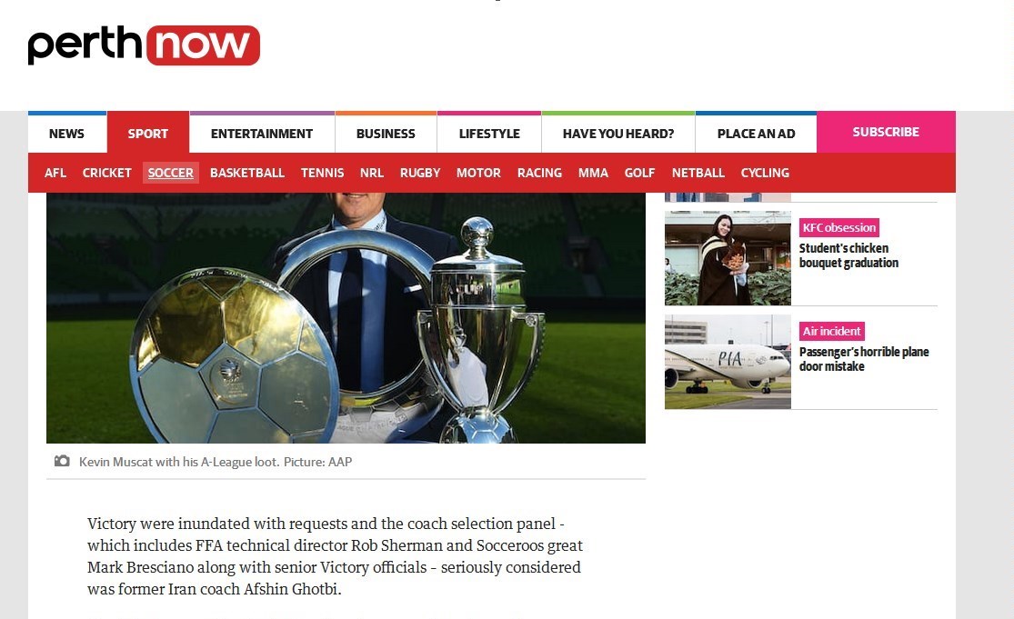 در زیر تصویر مربوط به خبر قرار گرفتن نام افشین در بین کاندیداهای جدی سرمربیگری ملبورن ویکتوری را مشاهده میکنید.