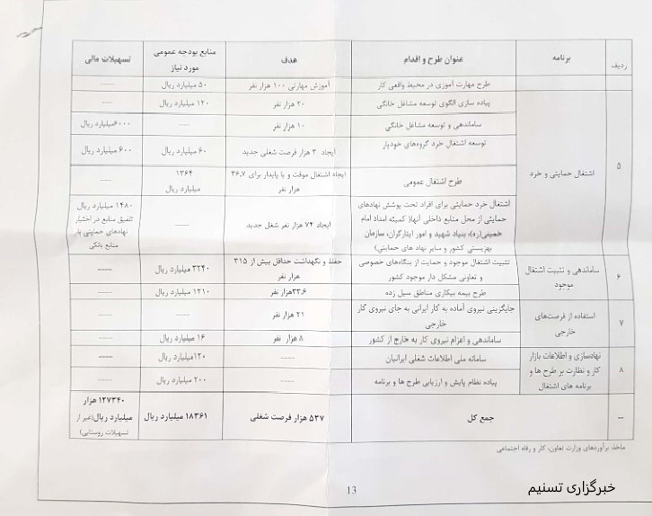 جمع کل اهداف برای ایجاد اشتغال در سناریوی دوم 537 هزار فرصت شغلی است که منابع بودجه عمومی مورد نیاز حدود 18361میلیارد ریال است که پیشبینی شده است حدود 127340 میلیارد ریال (غیر از تسهیلات روستایی) پرداخت شود.