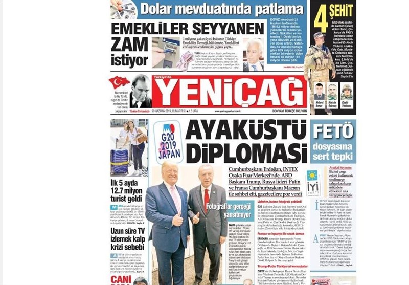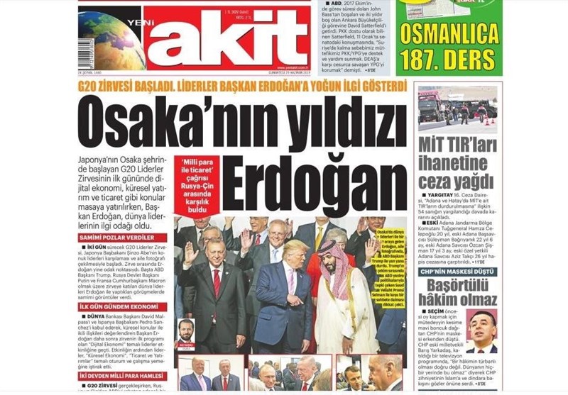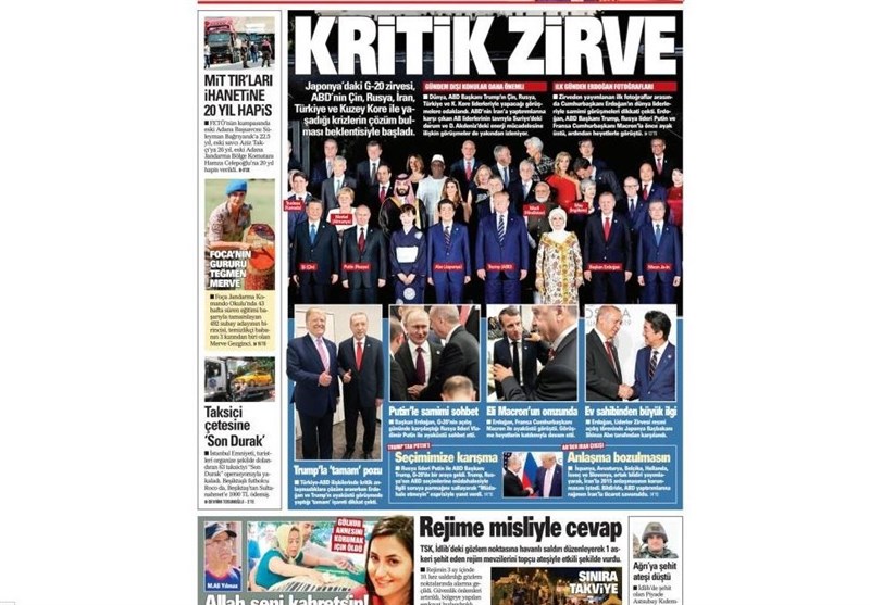 به گزارش گروه بینالملل خبرگزاری تسنیم، بسیاری از روزنامههای ترکیه، امروز در عکس و تیتر صفحه نخست، دیدارهای اردوغان در اوزاکای ژاپن را برجسته کردهاند.