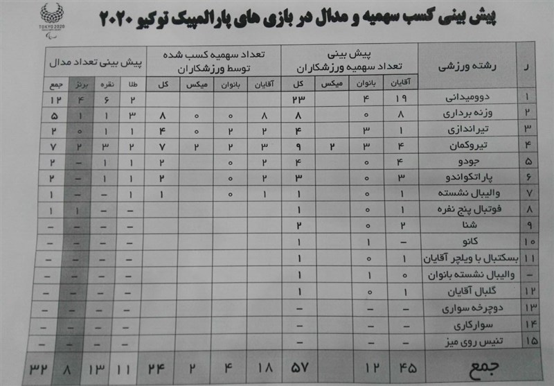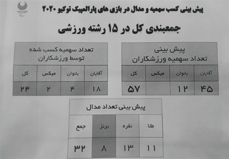همانطور که عنوان شد، پیش‌بینی کمیته ملی پارالمپیک به صورت دو ماه یکبار است و ارقام پیش‌بینی شده ممکن است با تغییراتی مواجه شود.