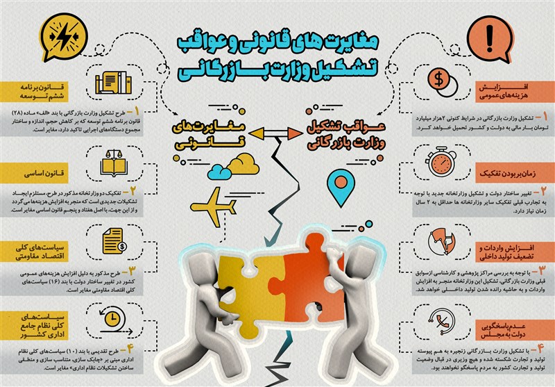 اینفوگراف/ مغایرتهای قانونی و عواقب تشکیل وزارت بازرگانی