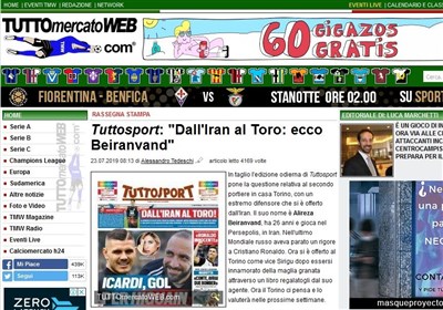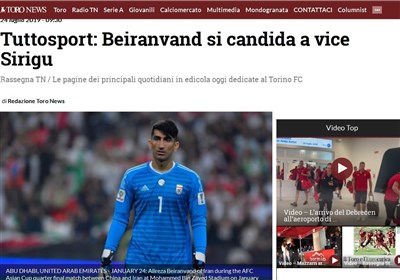 سایت اینترنتی توتواسپورت بخشی از گزارشی که با عنوان «از ایران تا گاو گردون (نشان باشگاه تورینو): بیرانوند اینجاست» در نسخه چاپیاش منتشر شده است را روی خروجی خود قرار داده و در آن نوشته است: در شماره امروز نشریه به بررسی سؤالی درباره گزینههای تورینو برای جذب یک دروازهبان ذخیره پرداخته شده و یکی از آنها یک دروازهبان ایرانی است که خودش را به باشگاه پیشنهاد داده است. نام او علیرضا بیرانوند است ، 26 سال سن دارد و برای تیم پرسپولیس ایران بازی میکند. در جام جهانی سال گذشته در روسیه او پنالتی کریستیانو رونالدو را گرفت. حالا او به عنوان یک ذخیره برای سیریگو به تورینو پیشنهاد داده شده و این اتفاق بعد از آن رخ داد که مدیربرنامههایش یک پیراهن تورینو و یک کتاب درباره این تیم را به او هدیه داد و این دروازهبان ایتالیایی را عاشق تورینو کرد. حالا تورین دارد به جذب او فکر میکند و در چند روز آینده نتیجه بررسیهای این باشگاه مشخص خواهد شد.