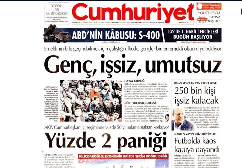 به گزارش گروه بینالملل خبرگزاری تسنیم، بسیاری از روزنامههای ترکیه، امروز در عکس و تیتر صفحه نخست، اشاره به وضعیت اقتصادی ترکیه و همچنین آخرین تحولات در مدیترانه را برجسته کردهاند.