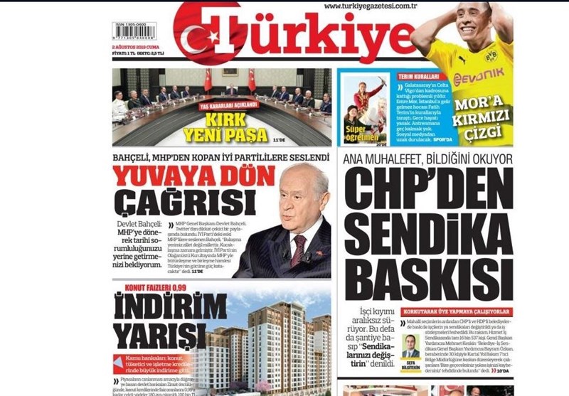 به گزارش گروه بینالملل خبرگزاری تسنیم، بسیاری از روزنامههای ترکیه، امروز در عکس و تیتر صفحه نخست، افزایش قیمت گاز طبیعی و درخواست باغچلی برای بازگشت اعضای حزب خوب به حزب حرکت ملی را برجسته کردهاند.