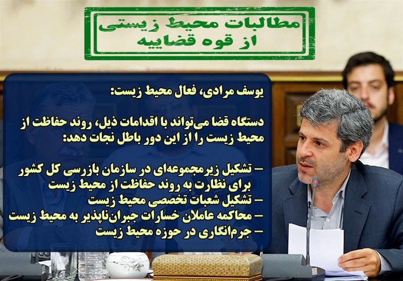 مرادی ادامه میدهد: از دیگر اقداماتی که شایسته است دستگاه قضا برای حفظ محیط زیست انجام دهد این است که عاملان خسارتهای جبرانناپذیر به محیط زیست را به پای میز محاکمه بکشاند. مانند آنچه اخیرا در مورد تالاب انزلی شاهد بودیم که دادستان بندرانزلی علیه دستاندرکاران طرح بایوجمی اعلام جرم کرد. اگر مسببان خسارتهای جبرانناپذیر محاکمه شوند، هم از تضییع حقوق عامه جلوگیری خواهد شد و هم از تکرار تخلفات مشابه. به عنوان مثال صادرکنندگان مجوز و عاملان عبور هزاران کیلومتر خط عبور لوله گاز از زاگرس که موجب نابودی صدها هزار درخت بلوط سیصد تا چهارصد ساله شدند باید محاکمه شوند.