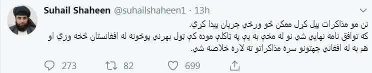 «سهیل شاهین» سخنگوی دفتر سیاسی طالبان در صفحه توییتر خود نوشت: اگر توافق با آمریکا نهایی شود تمام نیروهای خارجی باید از افغانستان خارج شوند تا راه برای آغاز مذاکرات بینالافغانی باز شود.