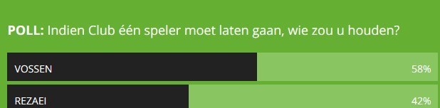 بر اساس نتیجه این نظرسنجی 58 درصد کاربران موافق کنار گذاشته شدن جلی ووسن از فهرست کلوب بروژ بودند و 48 درصد نیز به کاوه رضایی رای دادند.