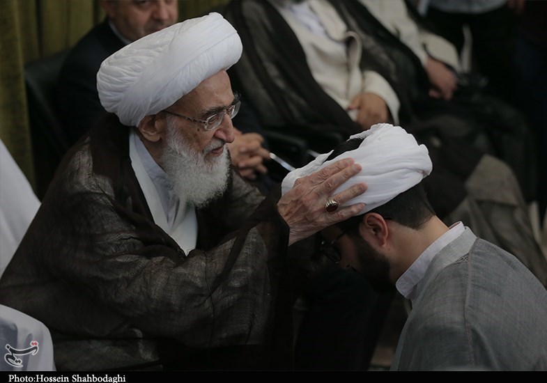 مراسم عمامه گذاری طلاب هم زمان با عید بزرگ غدیرخم توسط مراجع عظام تقلید در قم برگزار شد.
