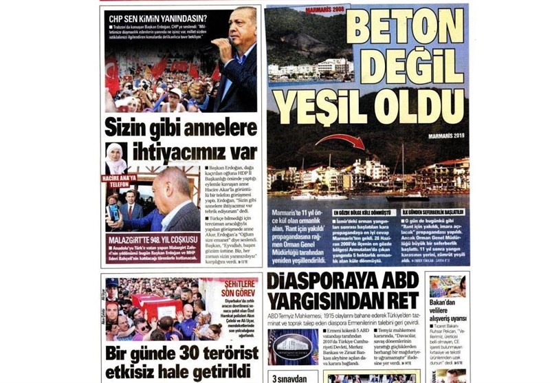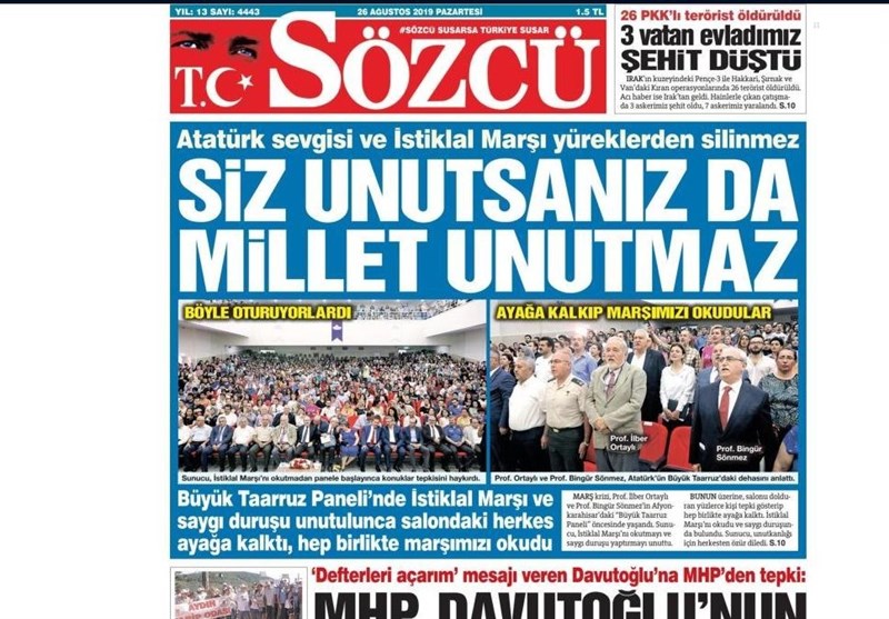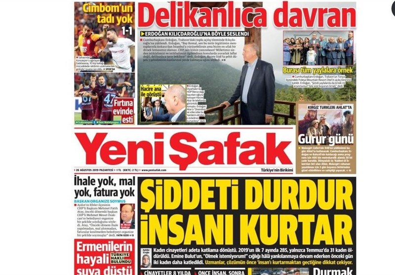 به گزارش گروه بینالملل خبرگزاری تسنیم، بسیاری از روزنامههای ترکیه، امروز در عکس و تیتر صفحه نخست، عملیات چنگال 3 را برجسته کردهاند. این روزنامهها همچنین موضوعاتی همچون حضور ظریف در نشست جی 7 و رد ادعای ارامنه علیه ترکیه در دادگاه آمریکا را مورد توجه قرار دادهاند.