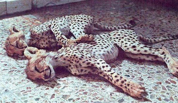 لاشه دو توله یوزی که شهریور 73 توسط بومیان بافق کشته شدند
