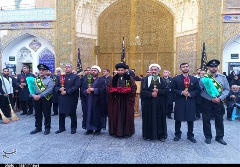در این مراسم پرچم متبرک گنبد حرم مطهر حضرت اباعبداللهالحسین با قرائت زیارتنامه، مرثیهسرایی و عزاداری جمعخوانی جمعی از خدام آستان مقدس بر گنبد حضرت عبدالعظیم حسنی(ع) بر افراشته شد.